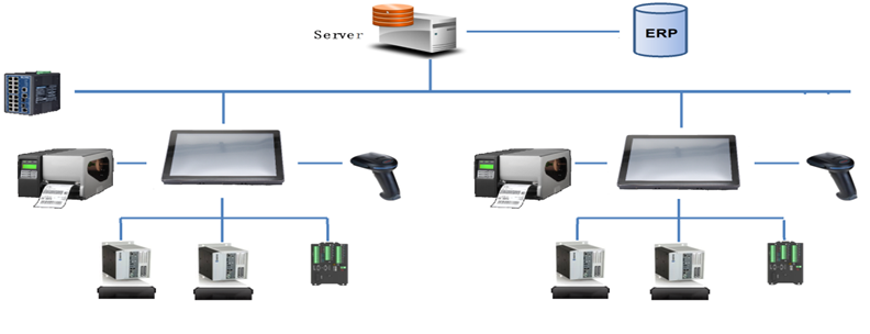 MES下層SCADA數據采集與監(jiān)控控制系統(tǒng),SCADA可以連接PLC,傳感器、RFID讀寫器、      條碼掃描槍、條碼打印等。